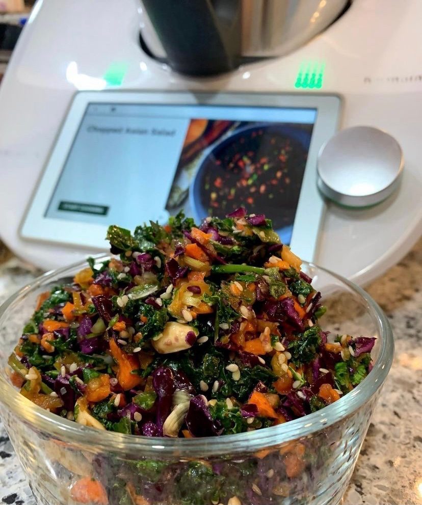 Je dirais que je prépare dorénavant plus de la moitié de mes repas avec mon Thermomix, que ce soit en suivant une recette complète ou pour faire cuire un ou des éléments de mon plat (faire cuire des légumes à la vapeur, préparer une sauce, hacher de l’ail ou des oignons, mixer des oléagineux…)